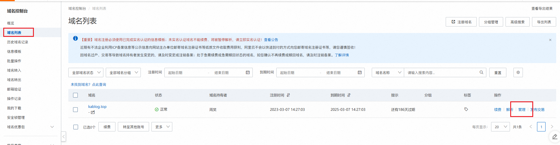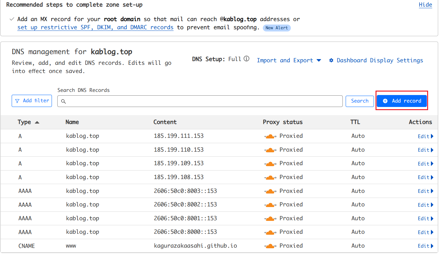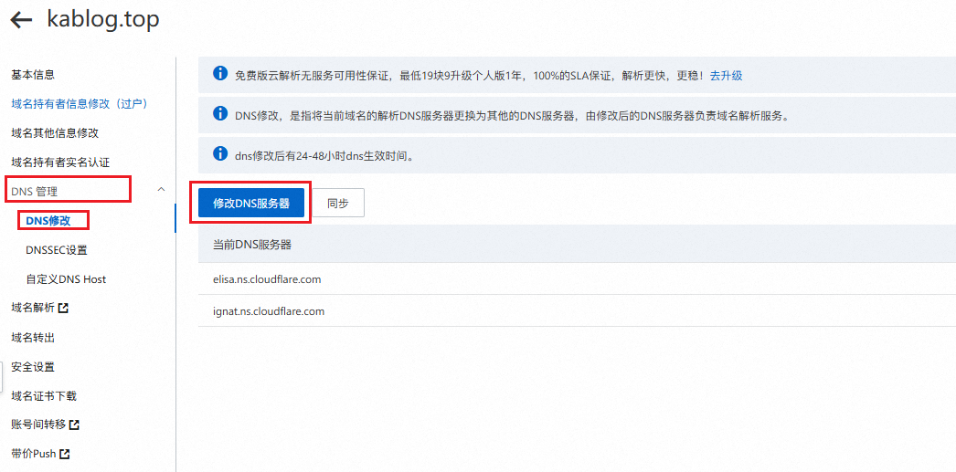 参数类似上述,将 Name 的 kablog.top 改为你的域名即可