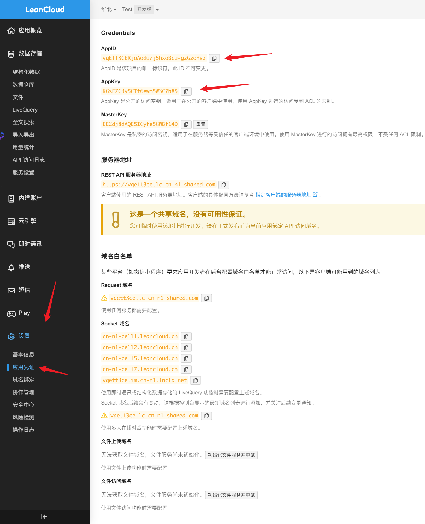 将上方 AppID 与 AppKey 填入相应位置