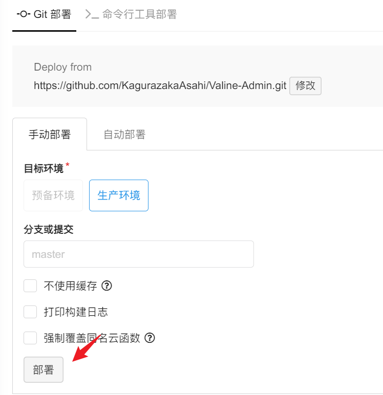 这里需要填入 https://github.com/zhaojun1998/Valine-Admin.git