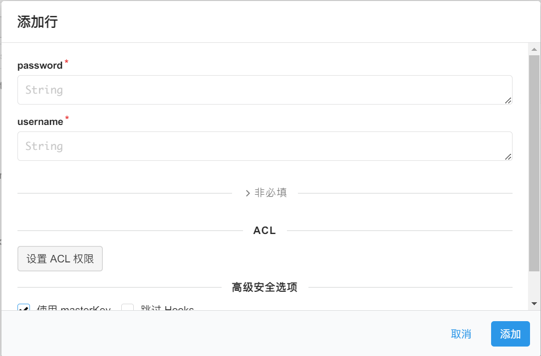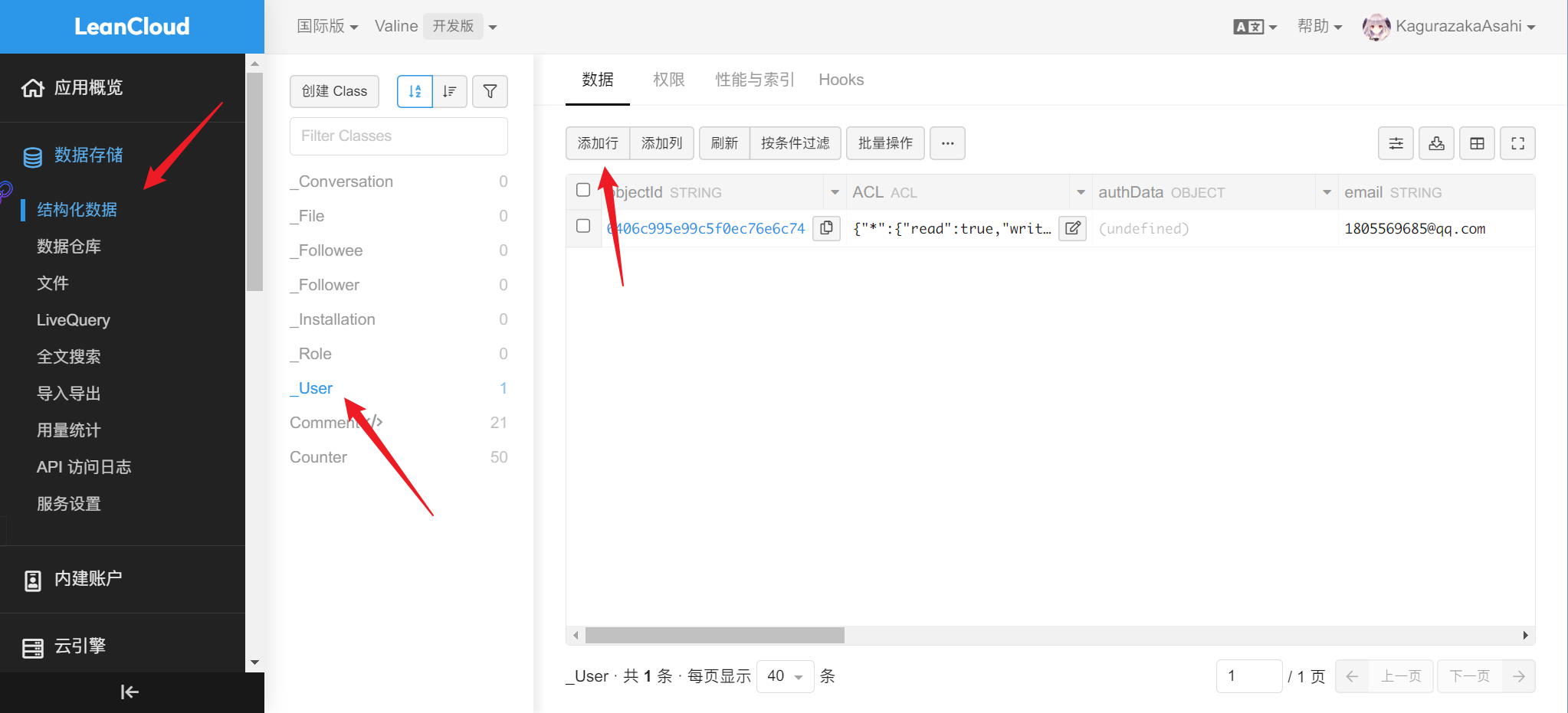 在 _User 栏添加一行, username 填邮箱, password 自己设定