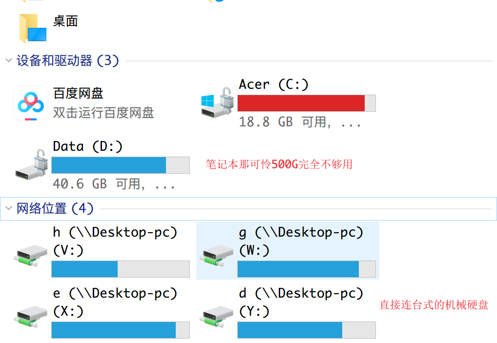 既然笔记本就在身边,那么就直接连到同一个网,通过 SMB 协议让笔记本访问台式电脑共享的文件夹.